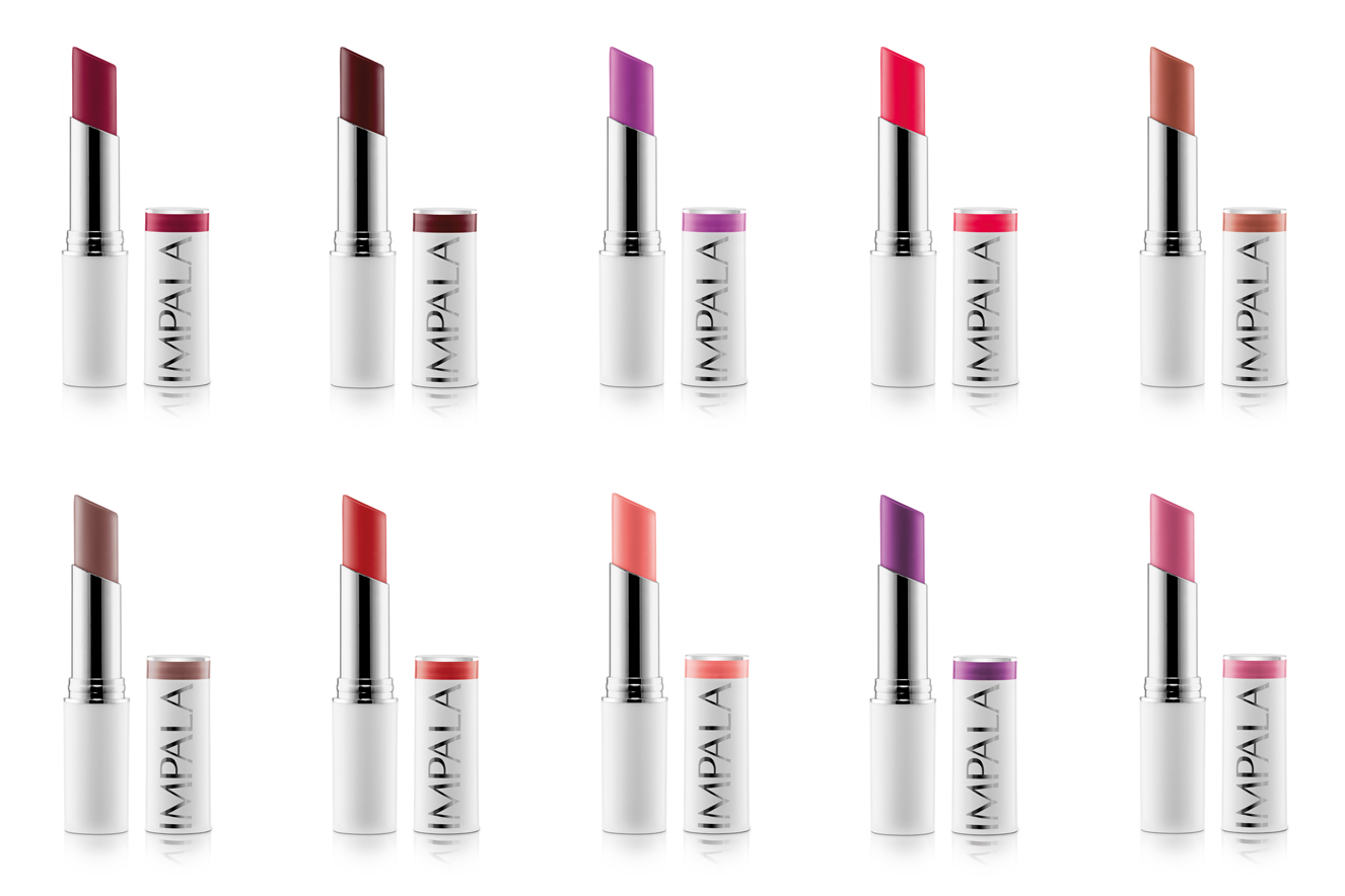 A Impala promete durabilidade, boa fixação e aroma suave. Além disso, alguns produtos têm acabamento cremoso e outros são matte, mas todos os batons têm formato de bastão.