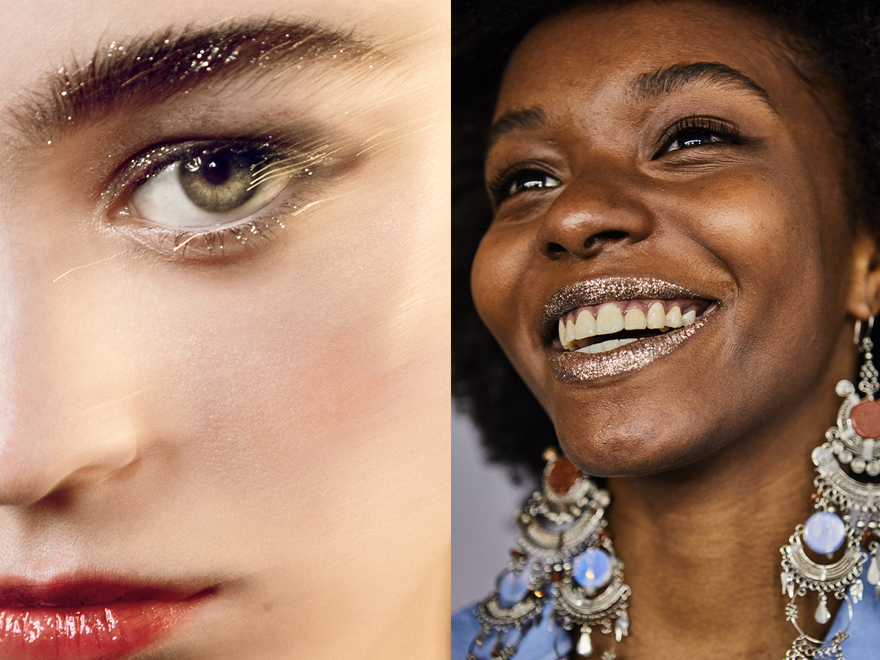“Delineados brilhantes, pedrinhas, pigmentos, sombras cintilantes e iluminadores mais evidentes são algumas alternativas ideais”, sugere ele. “O gloss com partículas de pigmento também é uma excelente escolha para adicionar um toque de luminosidade aos lábios”, completa.