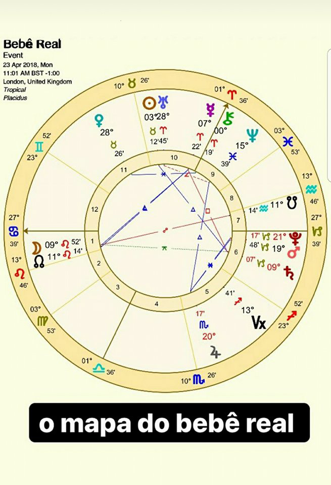 Filho de Kate Middleton e do príncipe William, o terceiro bebê real, irmão de George e de Charlotte, nasceu nesta segunda, às 11h01, em Londres. Pedimos que a astróloga Jacqueline Cordeiro fizesse o mapa astral do menino, que ainda não teve o nome divulgado. Leia o que ela diz: