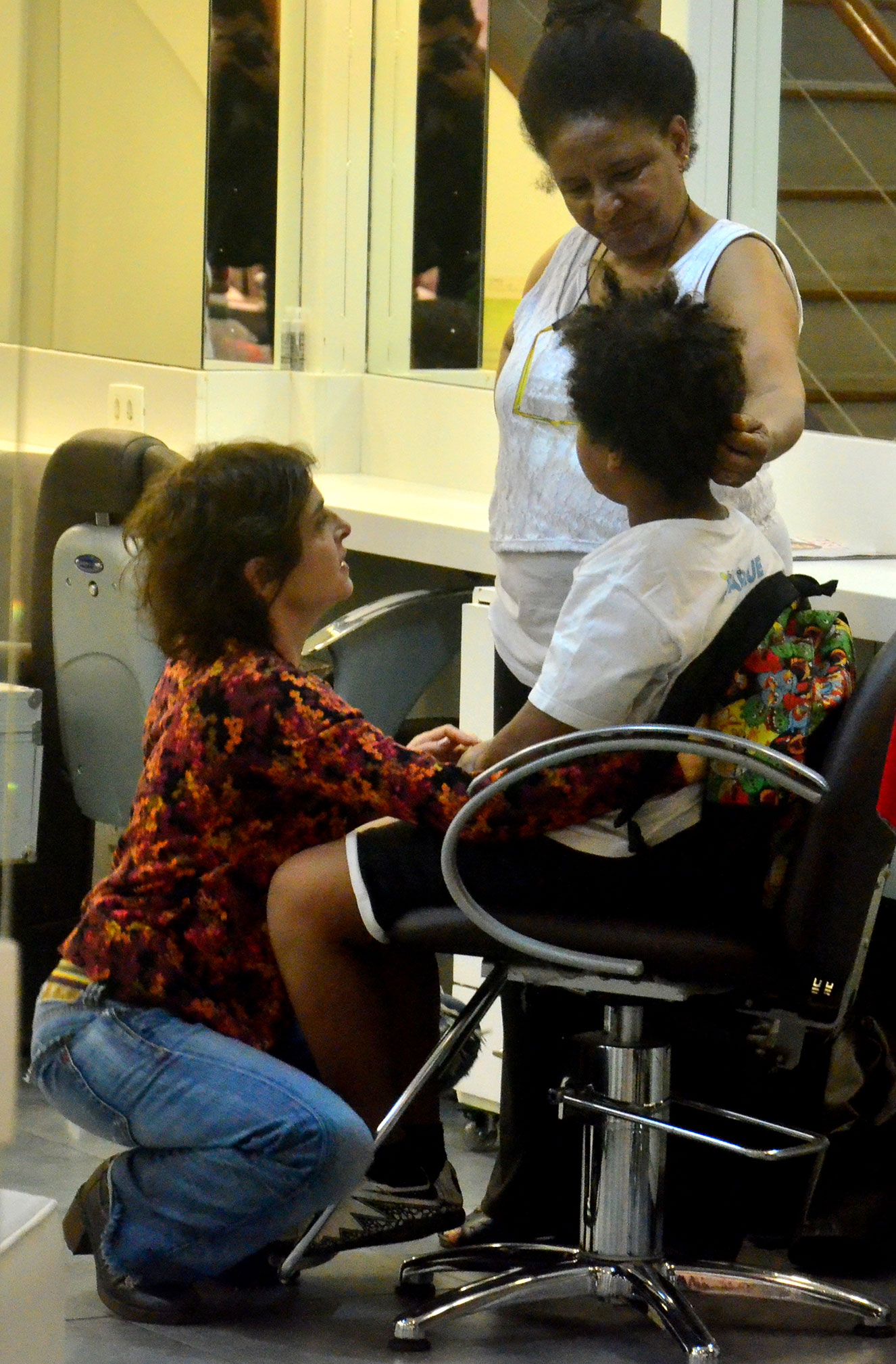 Nas imagens, Drica aparece instruindo a cabeleireira sobre o corte desejado ao garoto, enquanto o menino aguarda o novo visual. Após o trato nos fios, mãe e filho deixaram o local saboreando um refrescante sorvete.