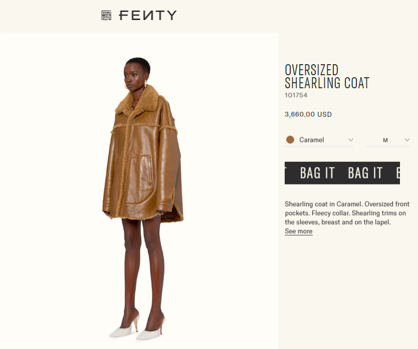 A Fenty produz casacos e acessórios feitos 100% de pele de cordeiro