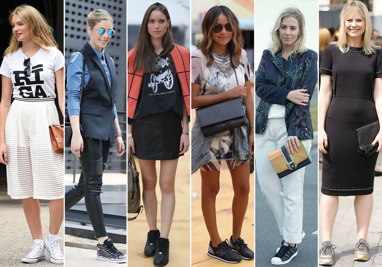 Com vestido, saia ou legging. O tênis saiu das academias e invadiu - de vez - os looks do dia a dia. Inspire-se nas produções de street style