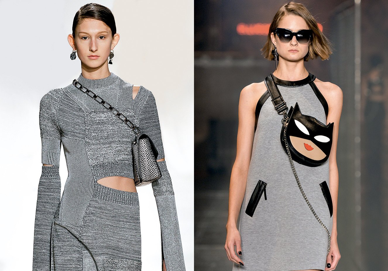 Para entrar de vez na tendência, basta apostar ainda em modelos com shapes e estampas divertidos, como fizeram as marcas Ellus 2nd Floor e Prada. A proposta da Ellus 2nd Floor é reproduzir o rosto de uma mulher gato, enquanto o modelo da Prada volta alguns anos no tempo com o desenho de uma fita cassete.