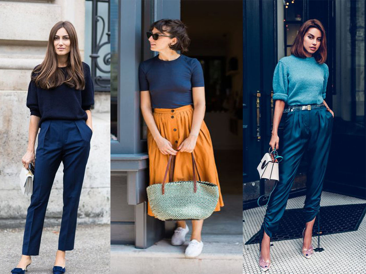 Apesar de ser discreto, o azul clássico pode ser o ponto de destaque do look quando combinado com peças em tons neutros, como branco, preto ou cinza. As produções monocromáticas, que são tendência, também são uma ótima opção para investir no Classic Blue. Combiná-lo com outras cores fortes, como amarelo, garante um look moderno.