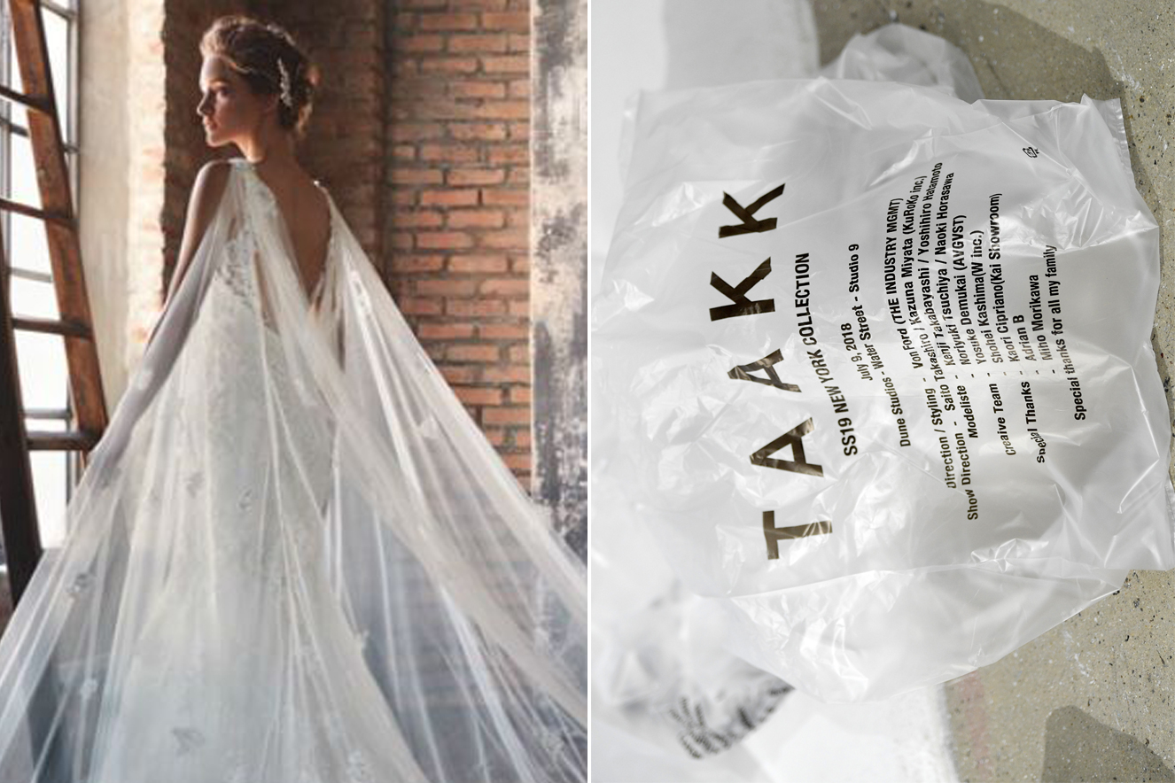 Plástico é o material escolhido por estilista ao criar vestidos de noiva