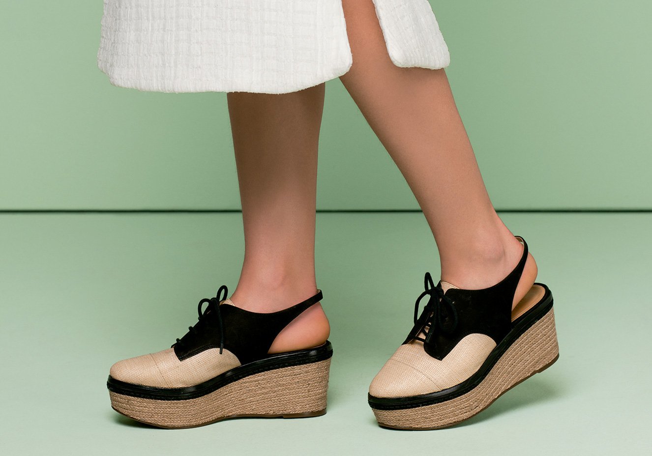 Sapatos e sandálias com saltos flatform ficam mais leves de acordo com o material escolhido – e a ráfia, de aspecto artesanal, é um deles.