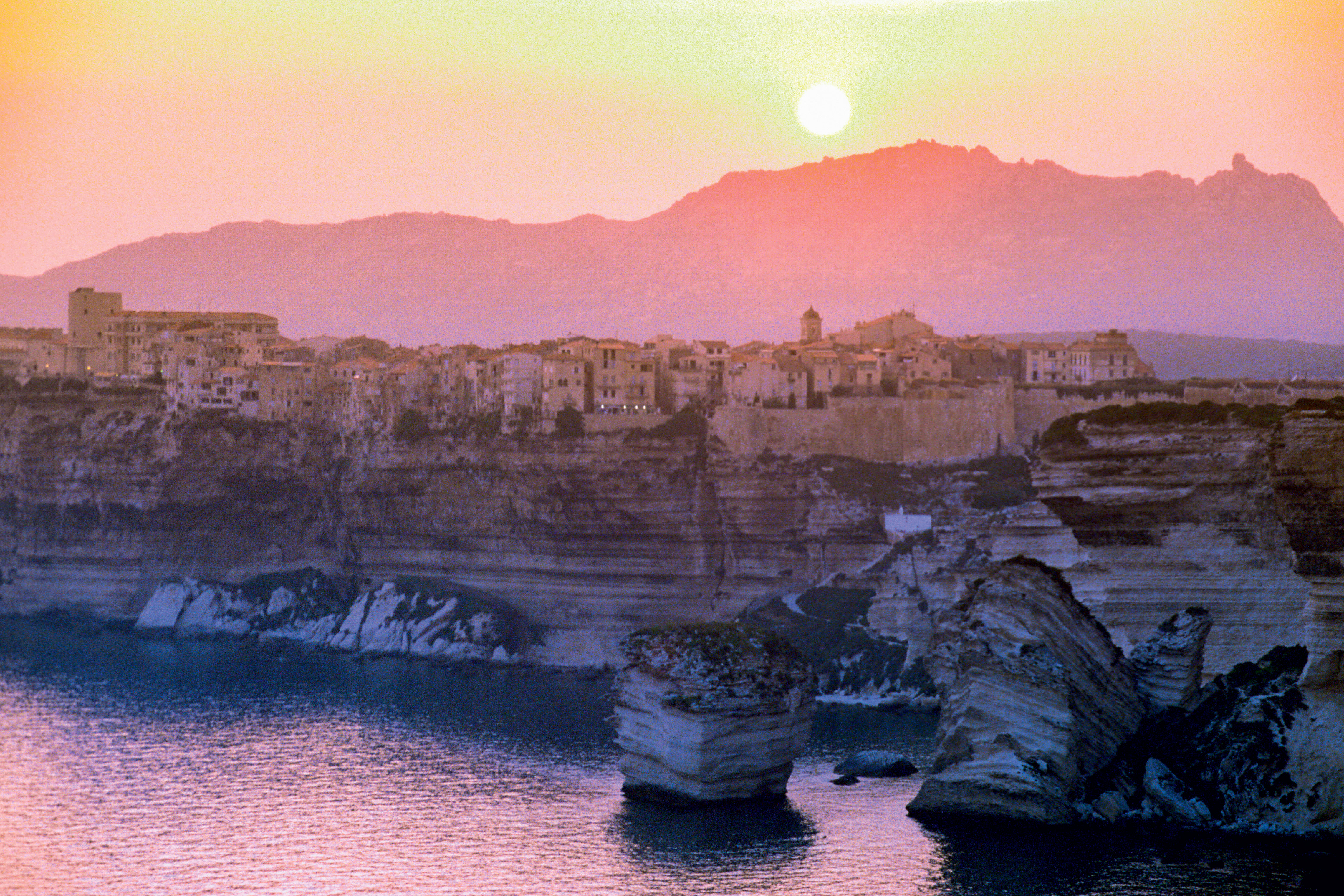 Navegamos até Bonifácio, no extremo sul da ilha, que é separada do norte da Sardenha, na Itália, por um pequeno trecho de mar. Antes de descer em terra firme, você avista uma imensa rocha de calcário. É de tirar o fôlego! Só quando o barco se aproxima do porto dá para ver as casinhas no topo da pedra.